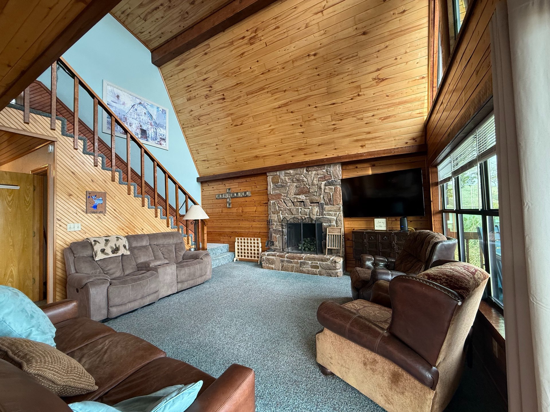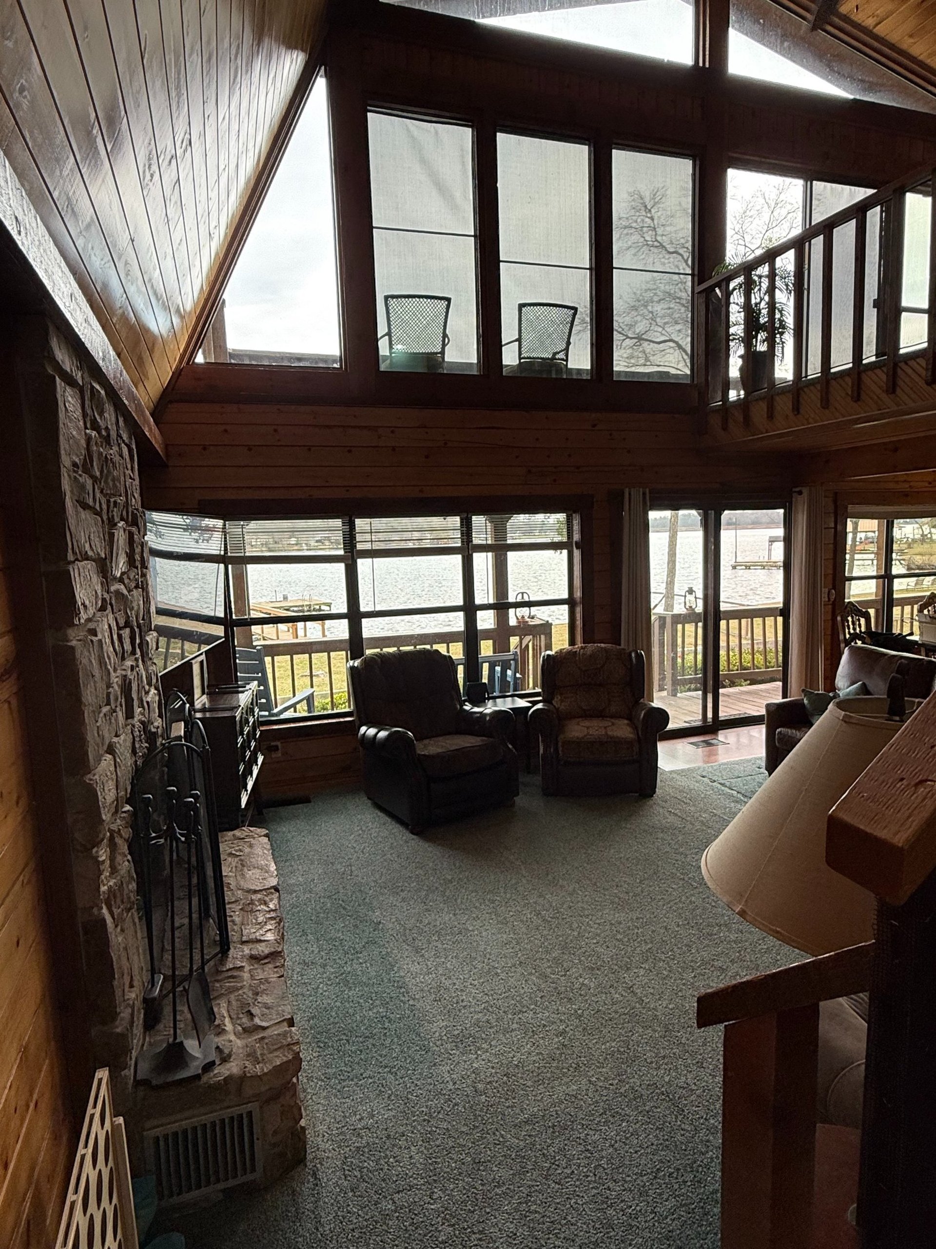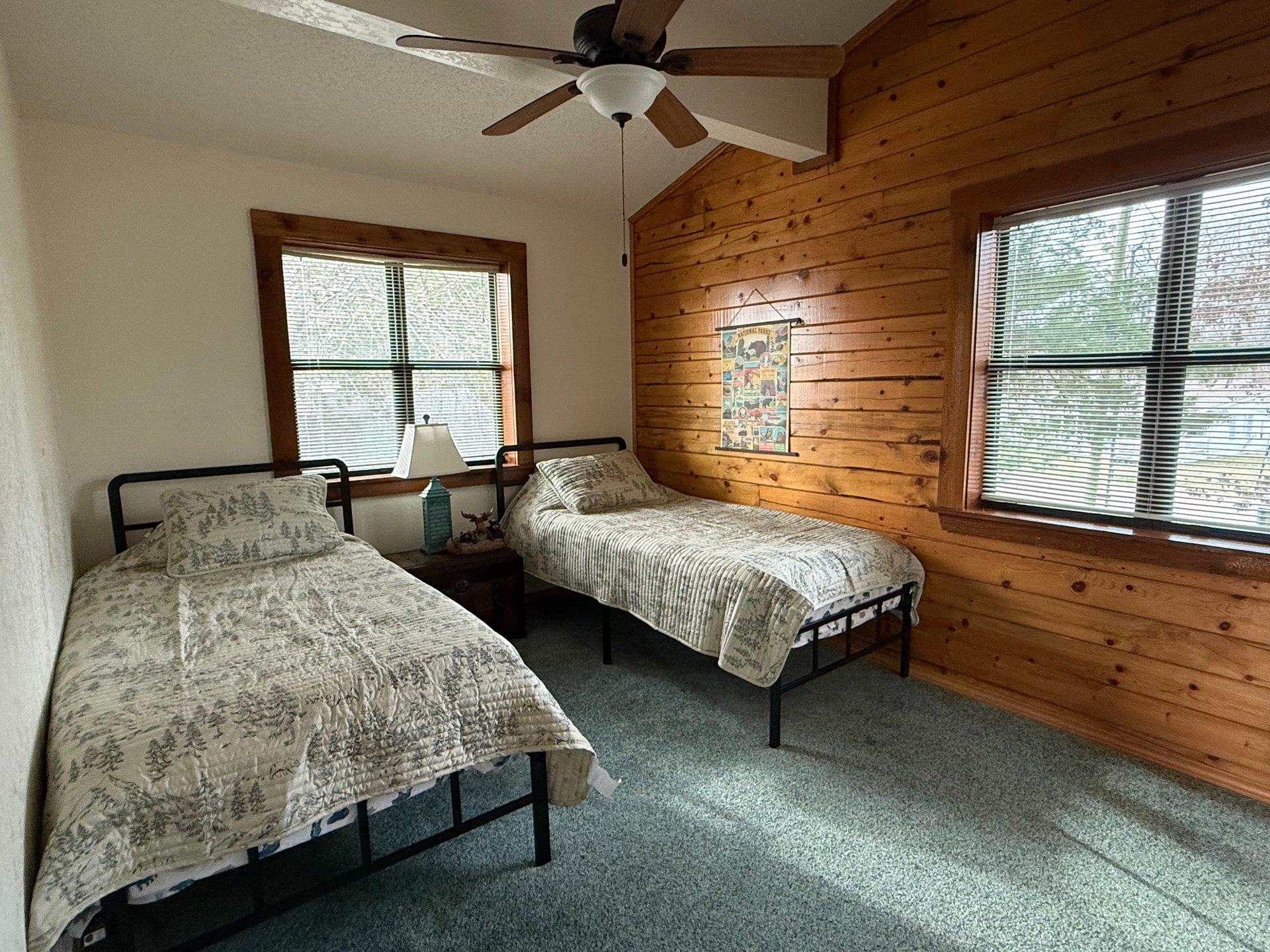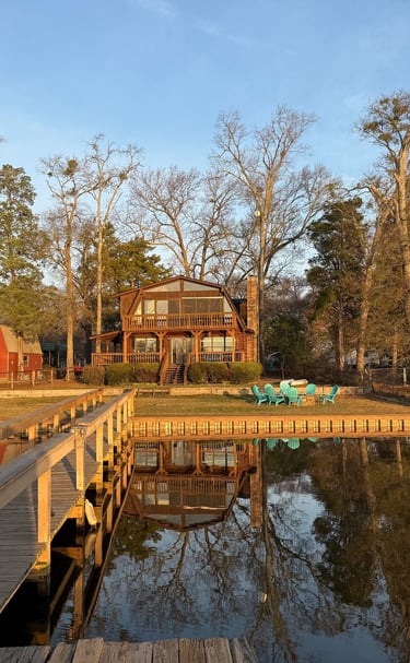 Cozy log cabin nestled by Callender Lake's peaceful shore.